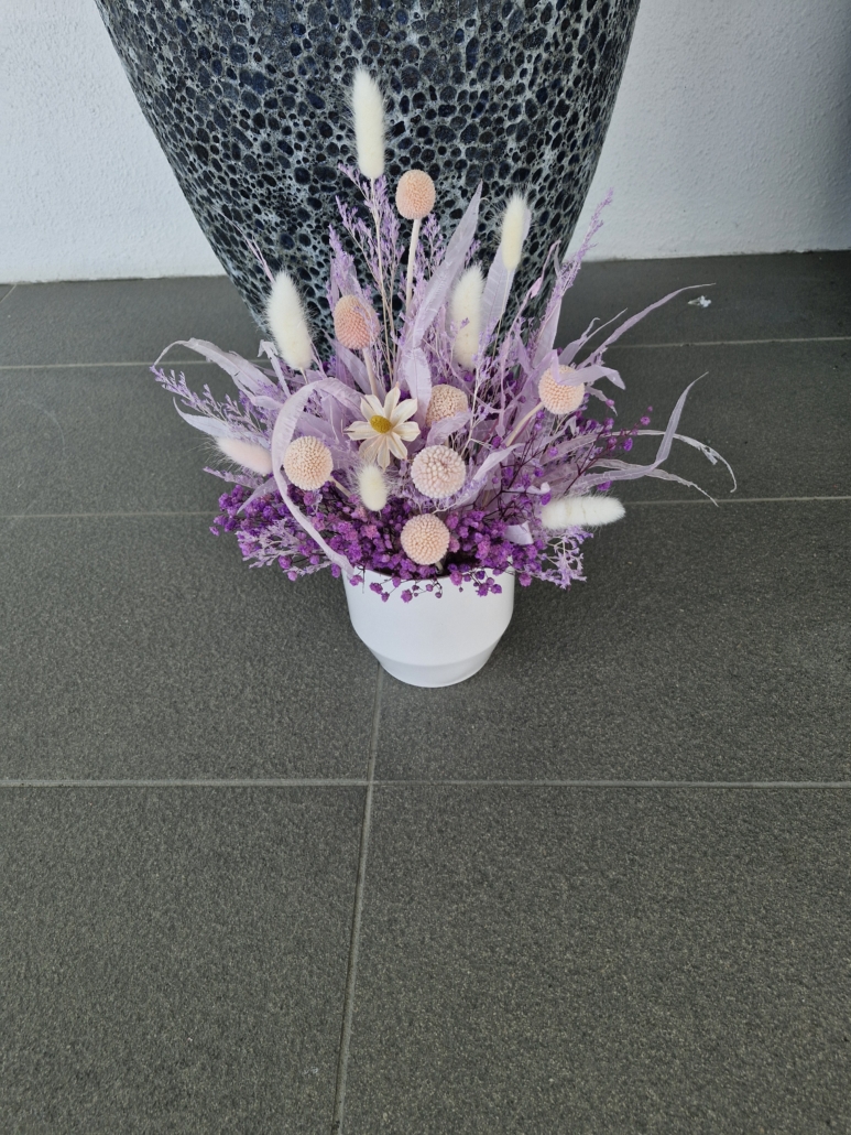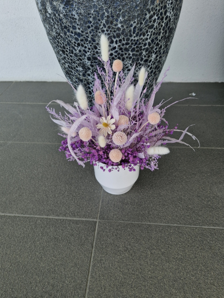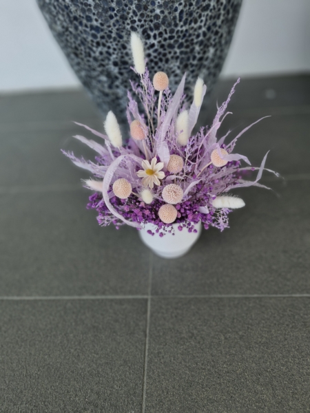 purple & pink preserved flowers arranged