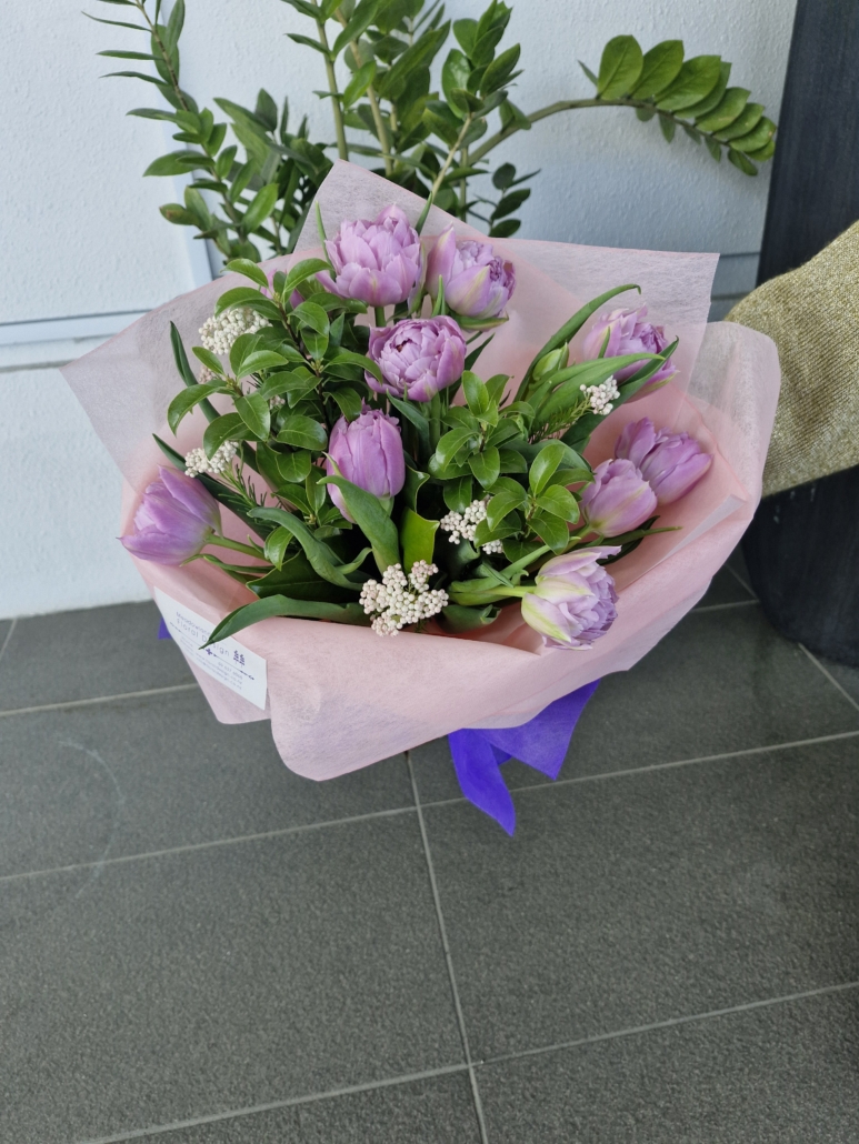 2 bunch of tulips and any kind of NZ handmade chocolate.
